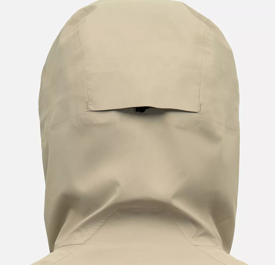 Интегрированный штормовой капюшон с системой регулировки надёжно защищает от ветра и дождя.