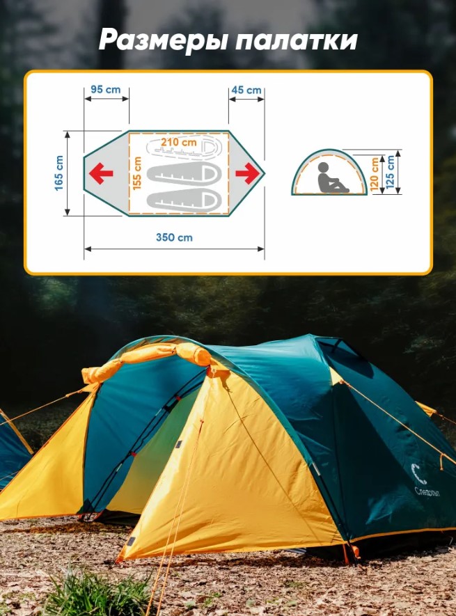 Тент изготовлен из ткани Ripstop 190T PU3000;