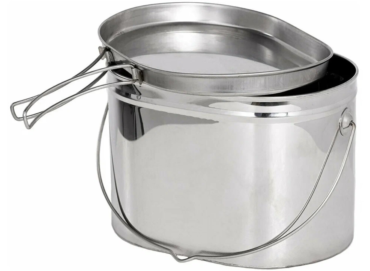 Дополнительно крышки котелков снабжены складывающимися ручками, что позволяет их использовать в качестве сковороды.