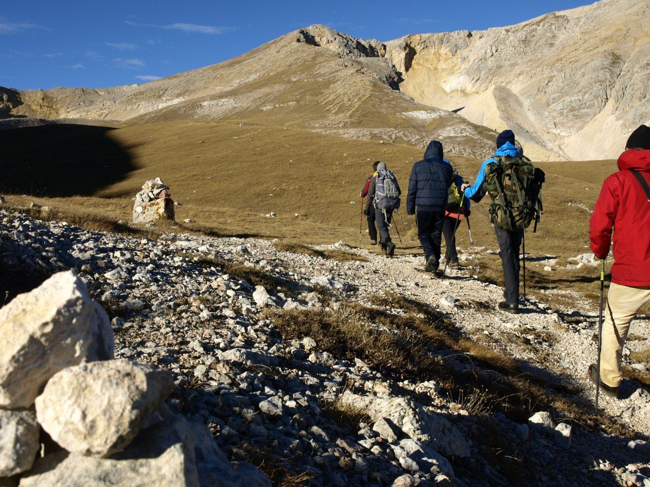 Группу сопровождают инструкторы пешеходного туризма.