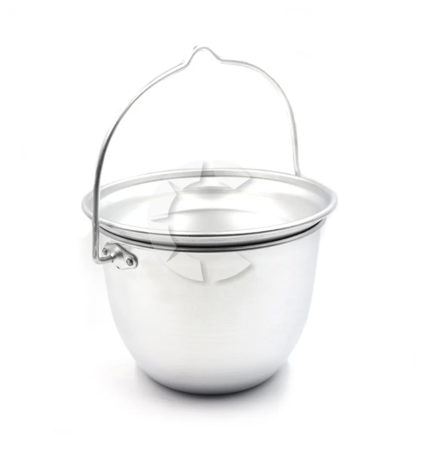 Котелок конический алюминиевый 4,5 литра, травленый, костровой, с крышкой - классический походный котелок, легкий, удобной формы, крышка легко может использоваться в качестве тарелки или салатницы. Качественная ручка с выгибом под треногу или костровой трос. Крышки конических котелков можно использовать в качестве посуды, а крышки котелков большого объёма и как блюдо или салатницу.